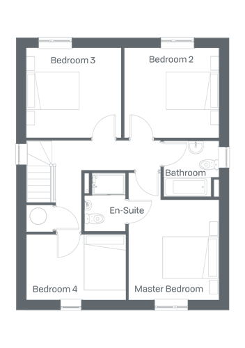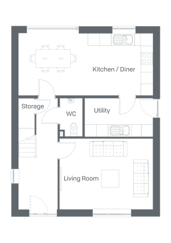 The Kingswell is an impressive detached four-bedroom home. The ground floor has a spacious open-plan kitchen-diner with french doors to the rear enclosed garden. Leading from the kitchen is the utility room. Also on the ground floor are the living room and the downstairs WC.
