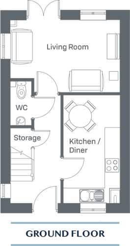 The Airedale is a beautiful two bedroom home with plenty of space for every day life. The ground floor has a open plan Kitchen Diner with an oven, hob and extractor fan. The family lounge runs along the back of the home and has a set of French Doors opening onto the enclosed garden. Also on the ground floor is the downstairs WC.