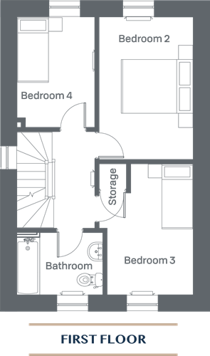 The first floor has three bedrooms, family bathroom and storage space.
