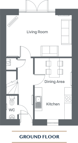 The ground floor has an open plan Kitchen Dining Area, spacious Living Room with French Doors into the rear garden and downstairs WC.
