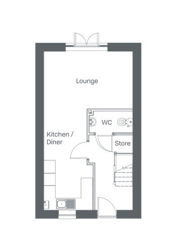 On the ground floor of the property is an open plan living space and kitchen complete with flooring and oven, hob and extractor fan. Leading from the lounge is the turfed rear garden. Also on the ground floor is the downstairs WC.